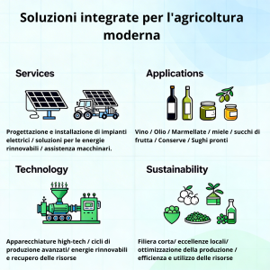 Inoltre, grazie alla filosofia della “filiera corta” e alla valorizzazione delle eccellenze locali, molti produttori si affacciano direttamente al mercato con i propri prodotti. Electron fornisce consulenza e assistenza tecnologica specializzata per ottimizzare produzione, efficienza e sfruttamento delle risorse, garantendo risultati concreti e sostenibili.
